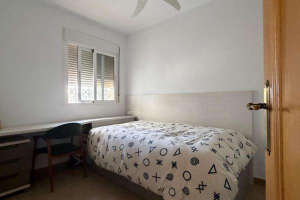 La planta baja se distribuye en un dormitorio, baño, amplio salón-comedor, cocina con acceso a un patio privado